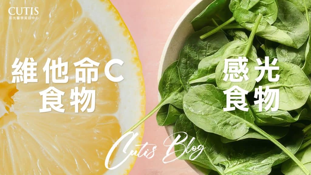 建議多進食含豐富維他命C的食物如檸檬、綠茶、桔子、蕃茄、柚子等;同時避免白天進食感光食物,以免增加黑色素的活性和數量,常見的感光食物包括菠菜、莧菜、韭菜、紫菜、木瓜、番薯、馬鈴薯、黑芝麻、紅豆等。
