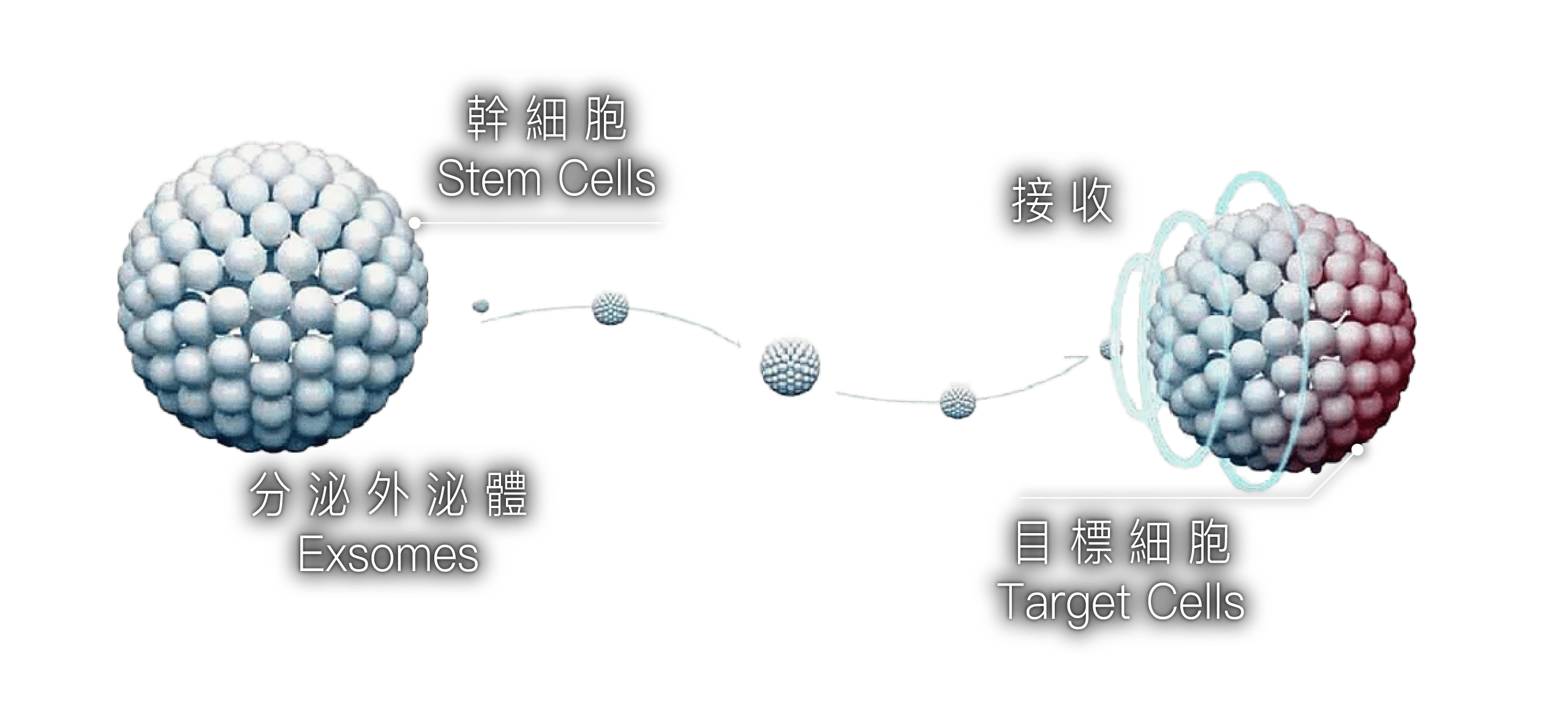 外泌體(Exosome)是一種極微小的細胞囊泡,內含高濃度幹細胞生長因子蛋白、RNA (核糖核酸)、miRNA(微核糖核酸)、脂質等豐富基因生物訊息。研究表明,外泌體是細胞之間的「郵差」,負責細胞間的訊息傳遞及溝通。外泌體尺寸極其細小,只在30-200nm之間(即約頭髮的 2000分之1),滲透性極高,能夠輕易到達其他細胞組織,確保訊息傳遞過程暢順,有助支持細胞再生和組織修復。CD9、CD63及CD81為外泌體外膜上特有的蛋白質,透過檢驗外泌體產品的以上蛋白質含量,可判斷外泌體是否純正或含有雜質