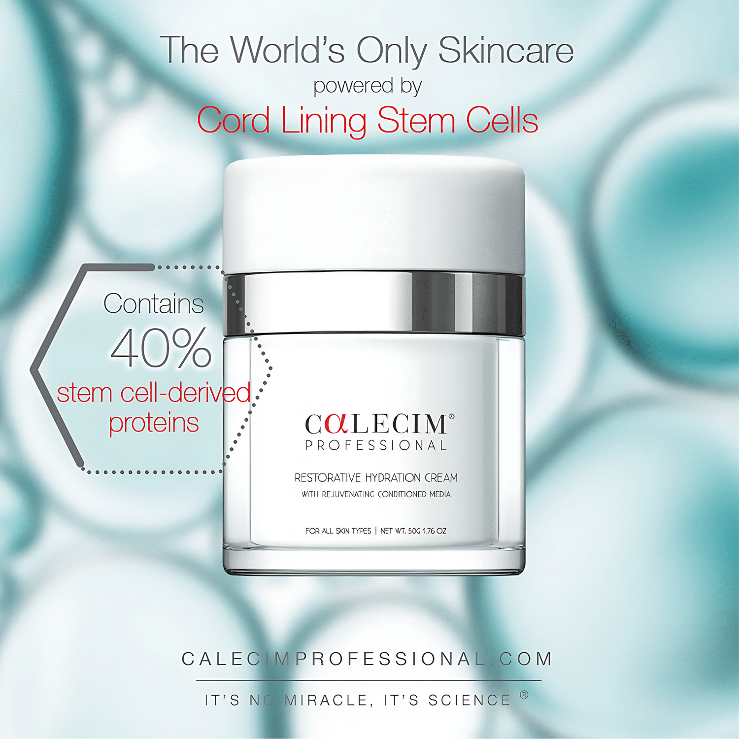 新加坡生物科技公司CellResearch Corporation擁有從臍帶膜提取活性細胞的專利技術,旗下CALECIM® Professional的科學家以超過10年時間,將其臍帶膜幹細胞研究和技術擴展應用於護膚領域,成功推出市場上唯一使用臍帶幹細胞蛋白的精華液。